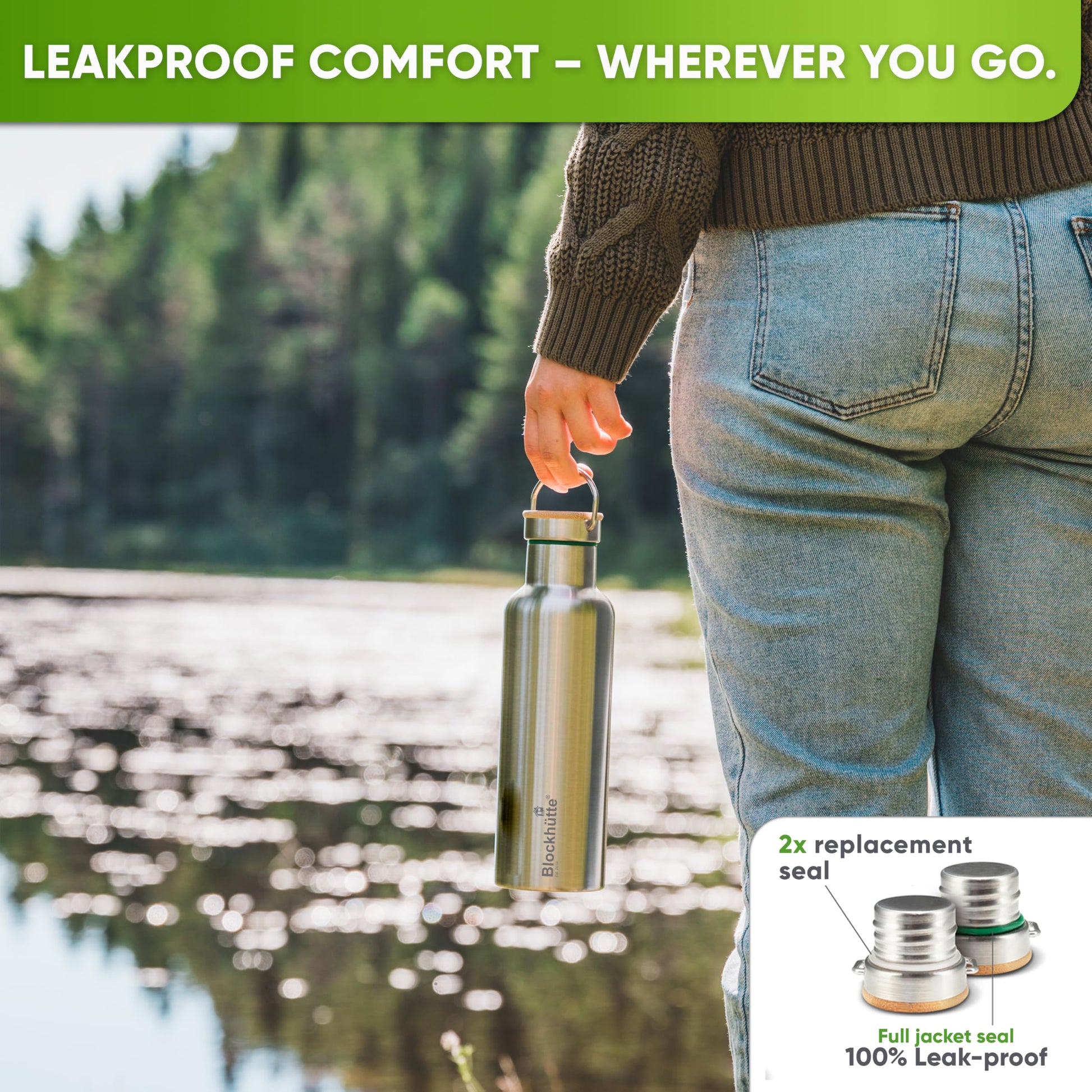 - The Blockhütte full-body seal ensures your leakproof water bottle is completely airtight, perfekt as stainless steel kids water bottle – plus, a replacement seal is included!