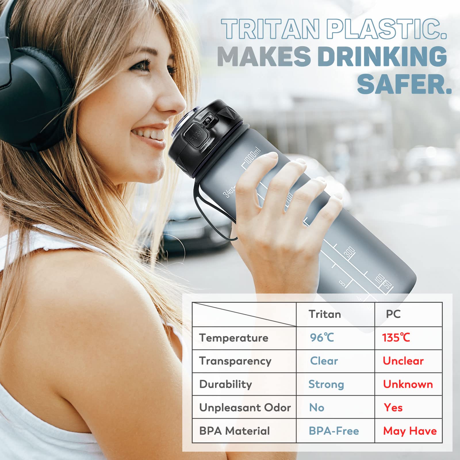 - 【100% Safe & Odorless Material】 Made of Eastman Tritan copolyester, all our water bottles are totally BPA-free and non-toxic, quenching your thirst with odorless water as well as a glass one can provide. Tritan also gives the extra durability withstanding accidental shocks and temperatures vary from -10℃ to 96℃.