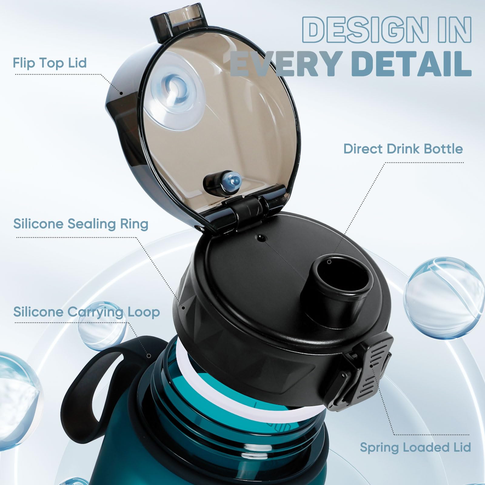 - 【360° Leakproof Design】 This water bottle employs a 3-stage leakproof design: a silicone sealing ring prevents leakage in the screw area; two silicone dot pads seal the nozzle and air vent when the lid is closed; a safety lock prevents accident opening the lid. Comes with sponge brush for your convenience.