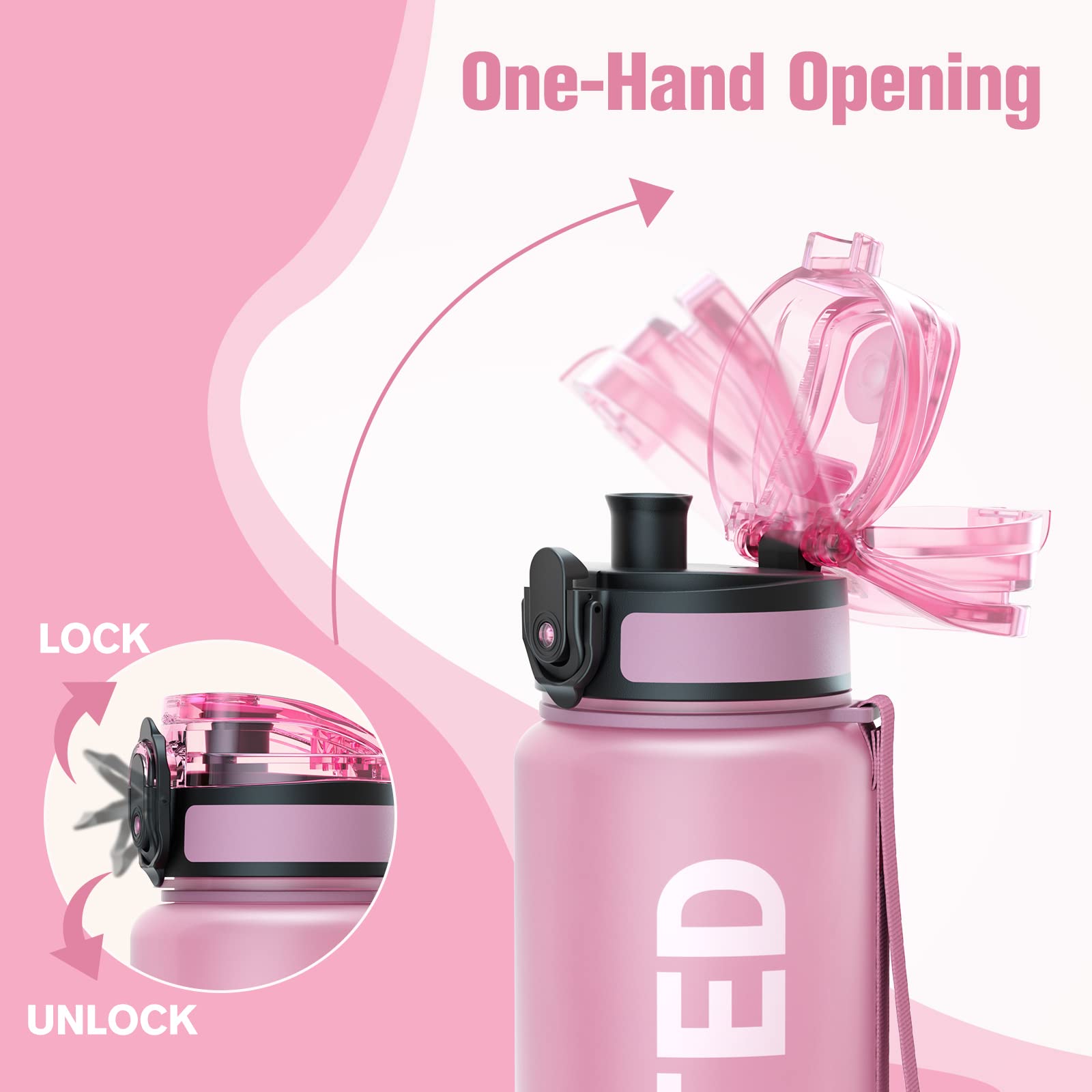 - EXCELLENT DRINKING EXPERIENCE: A special splash-proof lid can be opened with one hand at the touch of a button. The air holes in the lid ensure a quick and easy flow of water. The soft and durable silicone spout makes it easy to enjoy a leak-proof sip or a quick stream of water without having to lift the reusable bottle. Good for the gym, running, yoga, weight loss, at home and in the office.