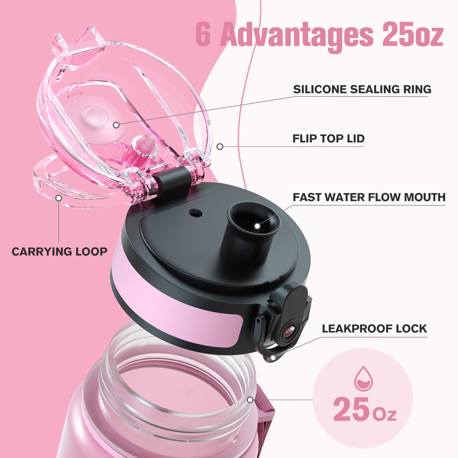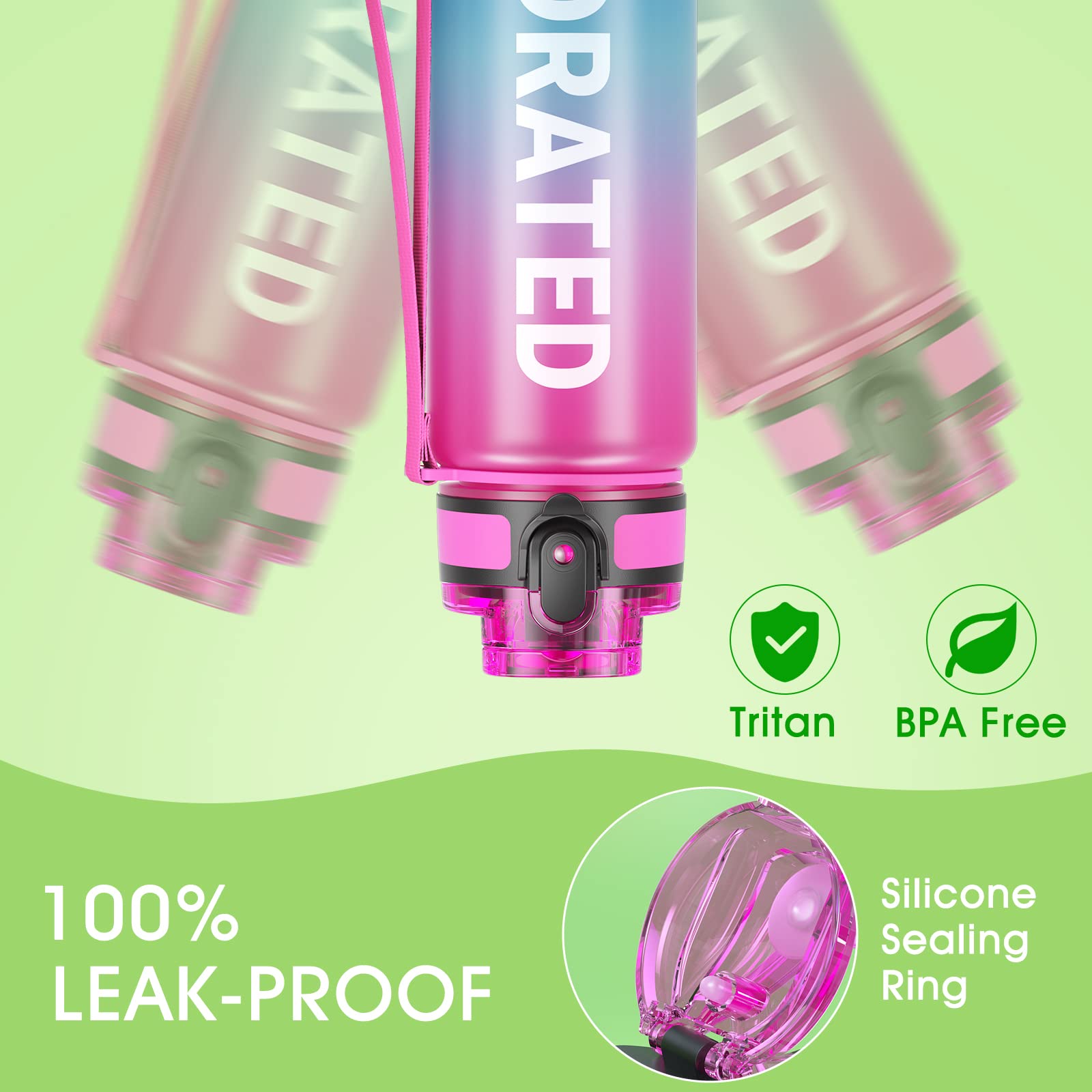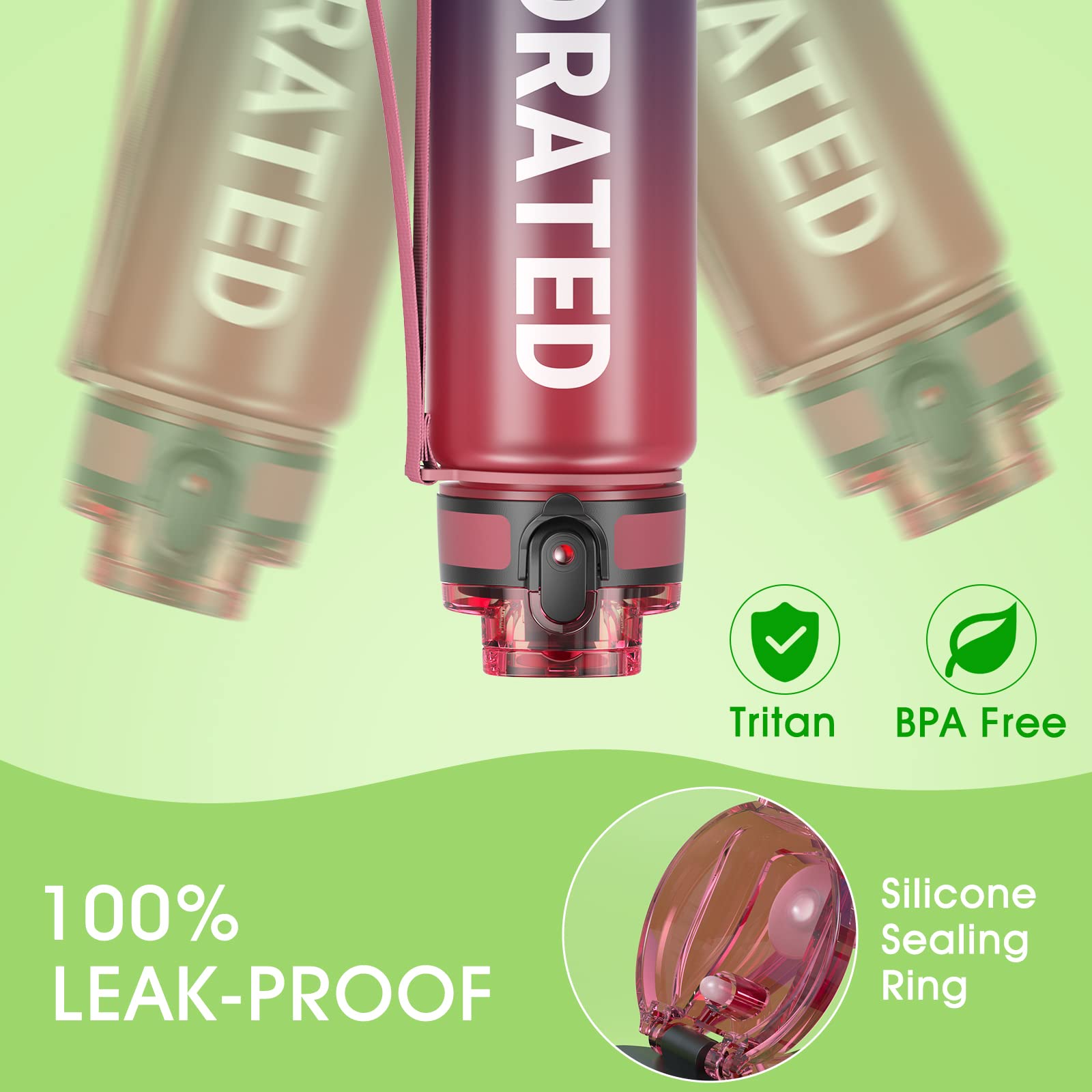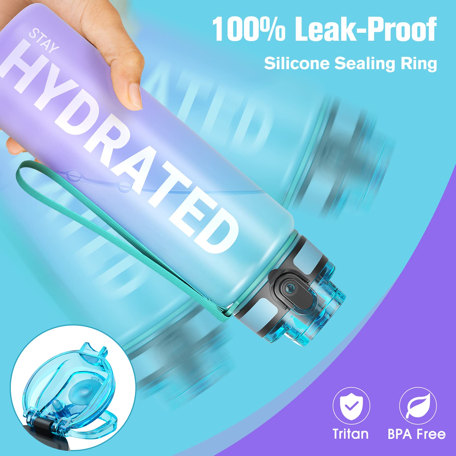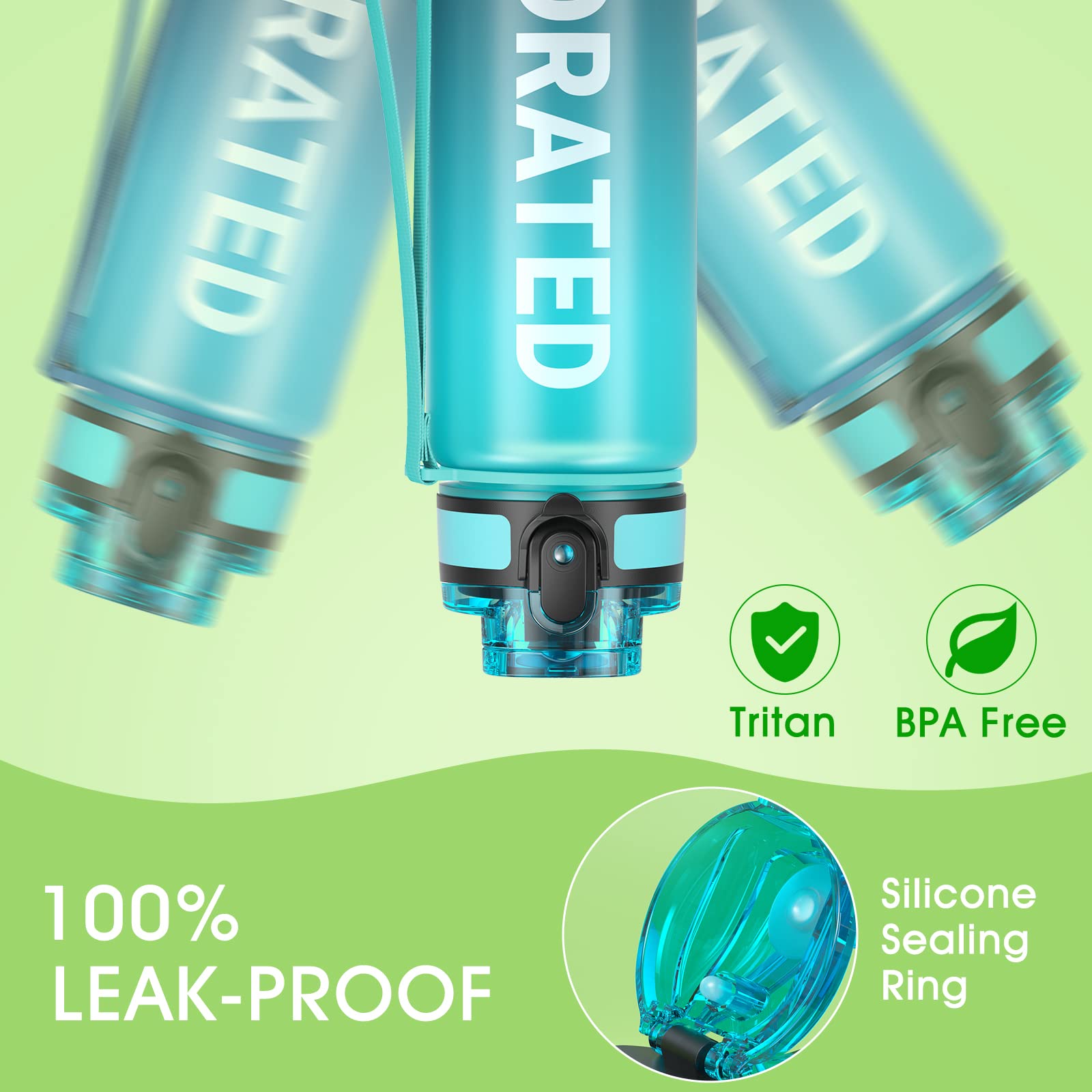 - BPA-FREE WATER BOTTLE: The leak proof water bottles are made of food-grade tritan plastic, which is non-toxic and BPA-free, so you don't have to worry about harmful chemicals. Our drinking bottle are a good alternative to plastic bottles and can be reused to protect our beautiful planet!