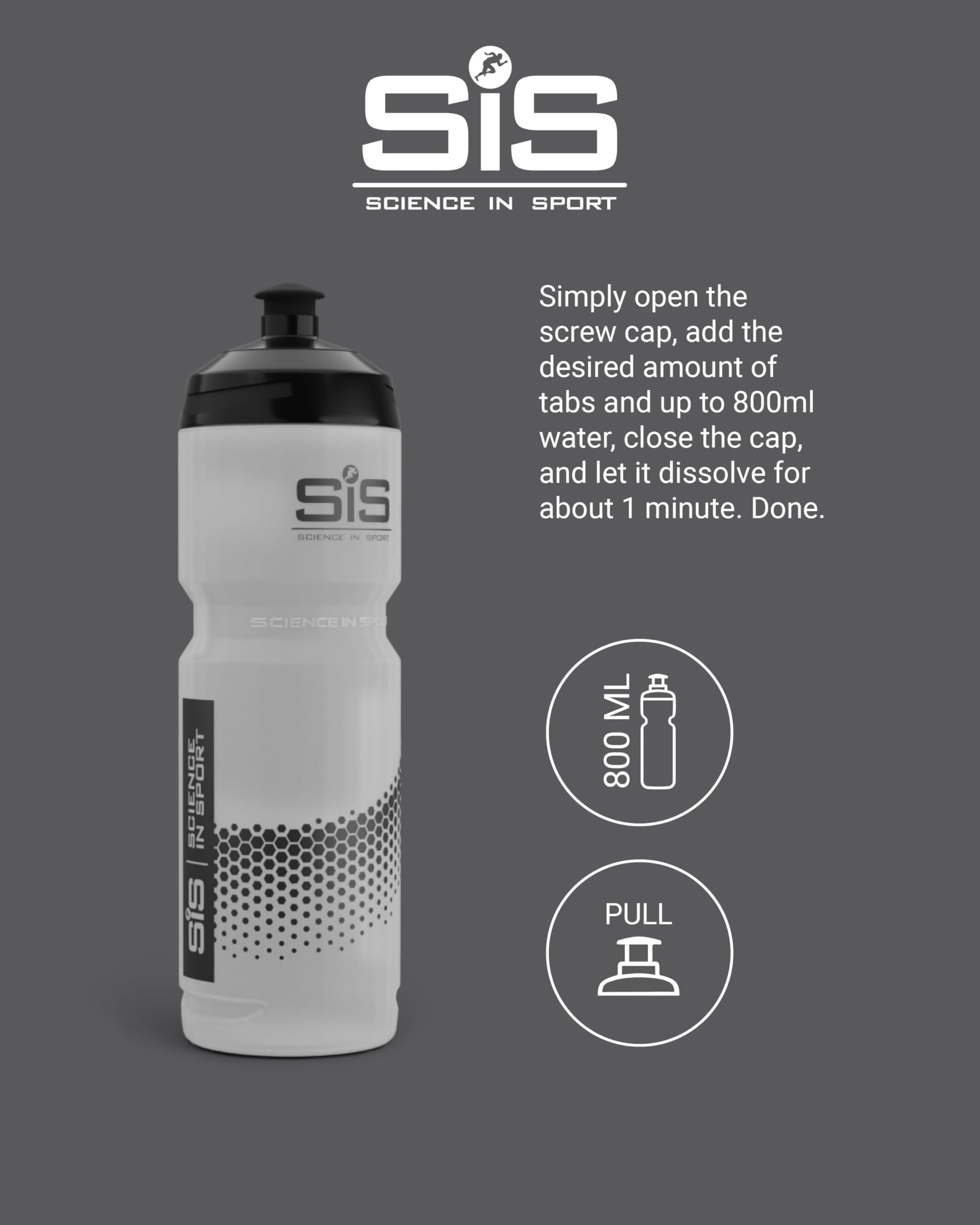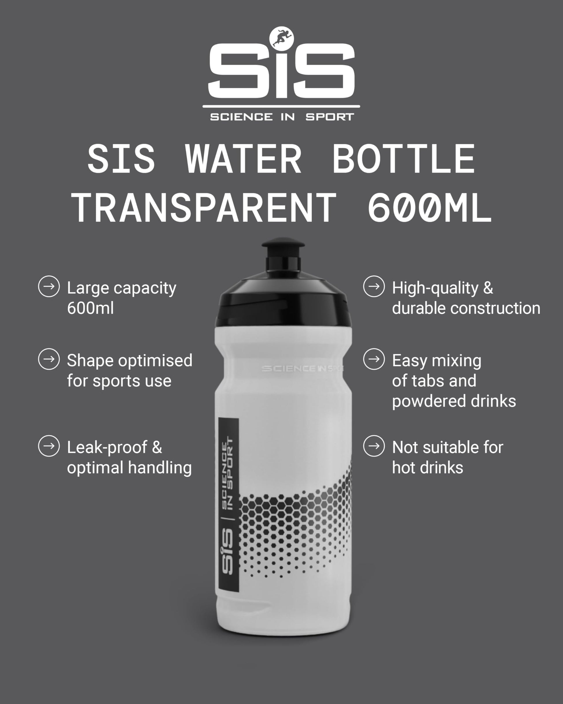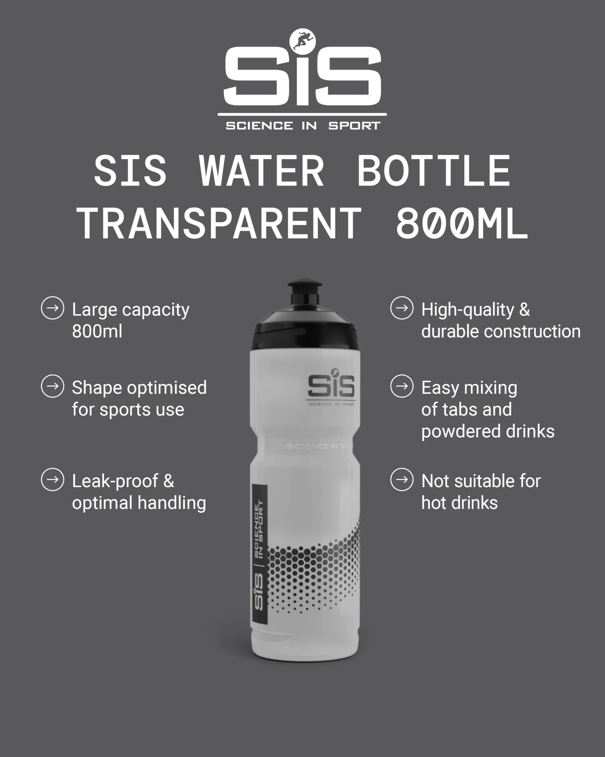 Science in Sport SIS Clear Sports Water Bottle, Plastic Water Bottle, Black Logo, Transparent Colour, 800 ml